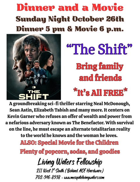 DINNER AND MOVIE, Sunday, October 26 @ 6:00 pm